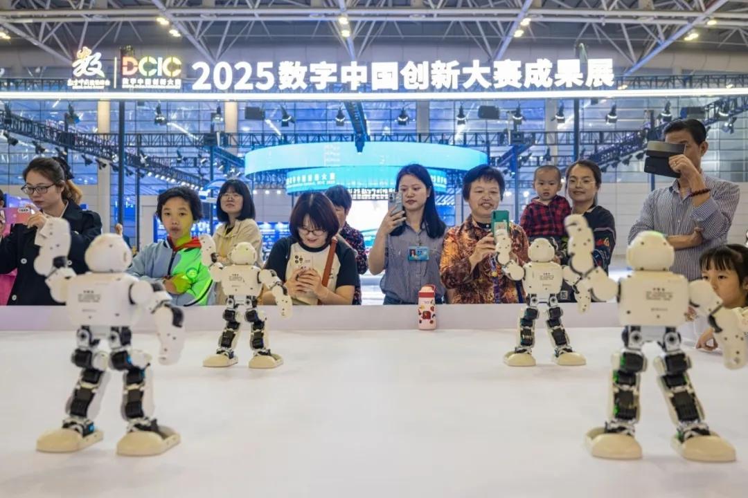 在2025年數字中國創新大賽成果展上,市民觀看機器人表演。(林雙偉 攝)