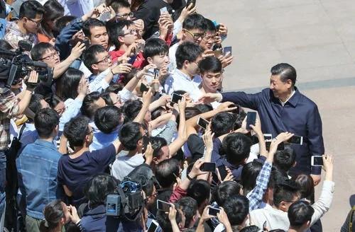 2018年5月2日,中共中央總書記、國家主席、中央軍委主席習近平來到北京大學考察。這是習近平離開學校時同道路兩旁師生親切握手。新華社記者 王曄 攝