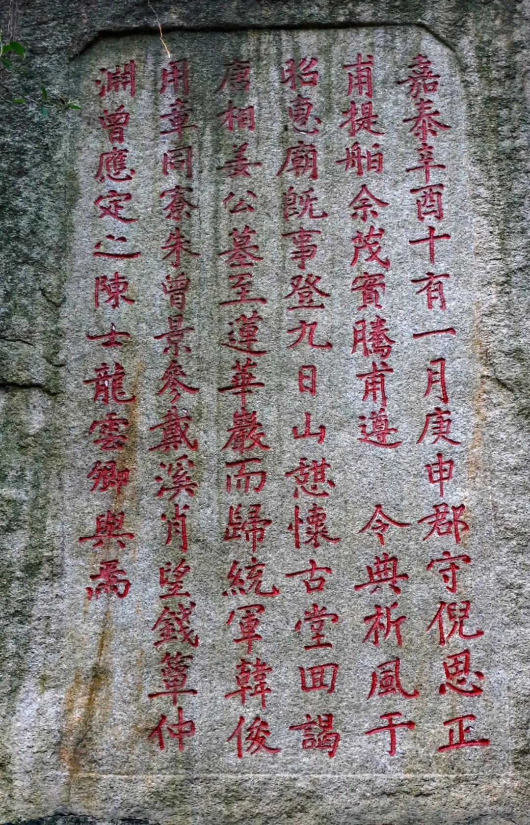 該石刻位于東峰東南坡姜相墓后巖壁上,東南向,高2.85米,廣1.85米,隸書,字徑0.18米,7行,行16字。石刻中記載“唐直臣姜相墓,歲就荒圮,不足以昭遺烈,子為葺治之,毋侈故度,毋役齊民,環植之所宜以木,俾來者之起敬焉”。南宋時期,“夫役”制度給百姓帶來了沉重負擔,征調民戶從事公共工程差務,使百姓無法專心生產,家中勞務也常被耽誤。而林枅在這方石刻中特地強調“毋役齊民”,足見他對百姓的體恤之情。《未軒文集》中評價他“惜民財,寬民力”,“毋侈故度”的要求,更是體現了他不追求奢靡,嚴格控制工程預算。石刻上的字字句句,無不彰顯著這位太守的為民初心與清廉品格。